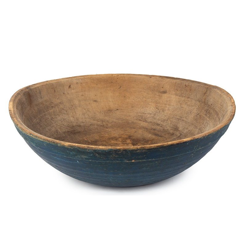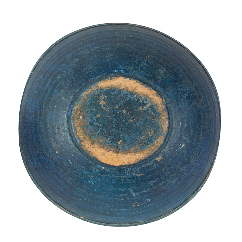 A Large – Early 19th Century Beehive Turned Bowl, Original Blue Paint