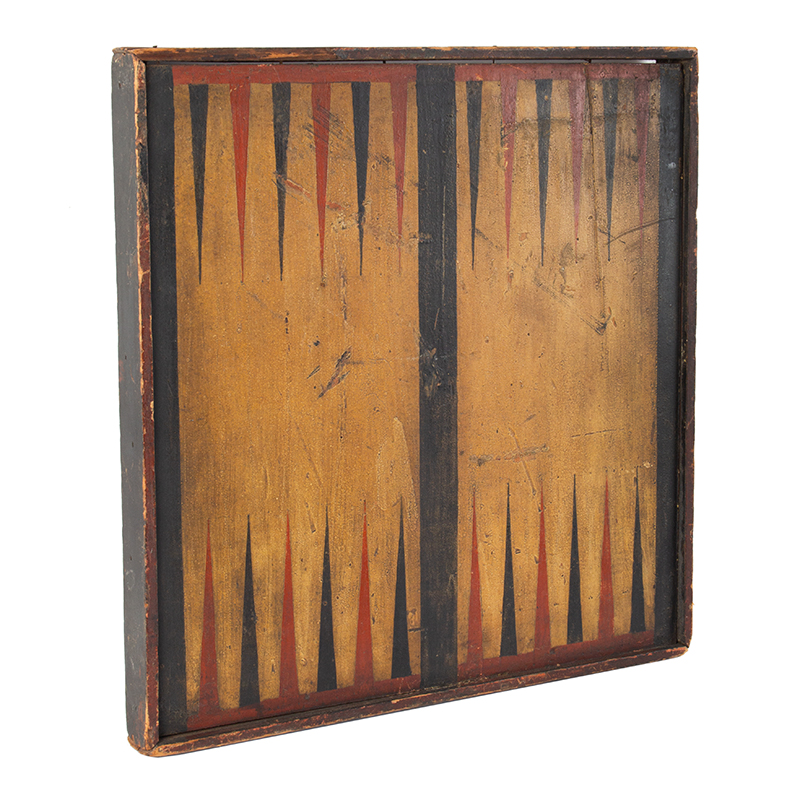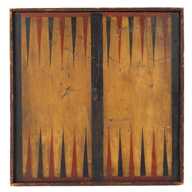 Bold graphic design done in red, black, and yellow. The side moldings are applied with tiny square finish nails.