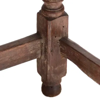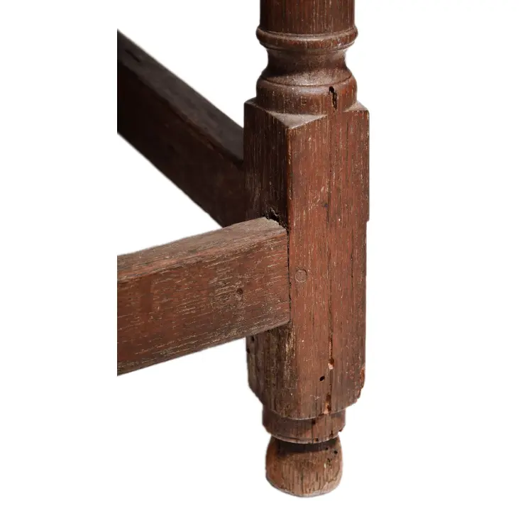 Item Condition: Some repairs and restorations to feet which are original (apparent pest damage with areas of over paint), corner patch to top (early or original top has one nail hole at underside), wear and distress to top (as depicted) with finish distress and areas of minor surface infill. The stool is functional and displays well.