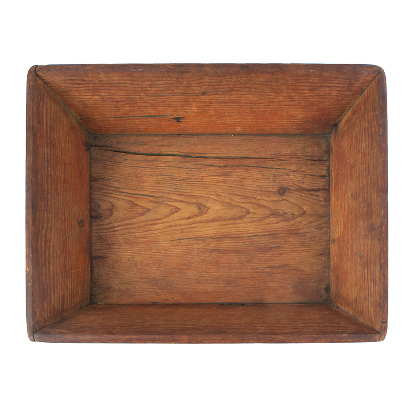 A nice size featuring outwardly canted sides on a slightly projecting bottom; square nailed joinery.