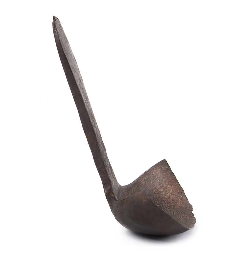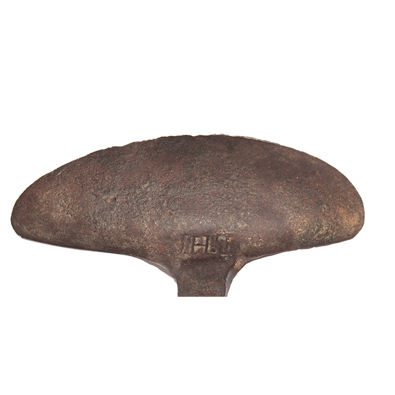 Used for hollowing out plank and windsor chair seats and for a cooper’s use. This handwrought draw knife signed “HT” is both.