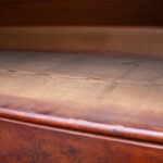 – Front interior drawer facing showing kerf marks caused by quick cutting of dovetail pins.