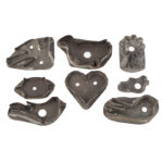Double arched board in original blue paint that was used to display the collection of eight cookie cutters. Forms include birds, a heart, turtle, and flowers. Fun display.