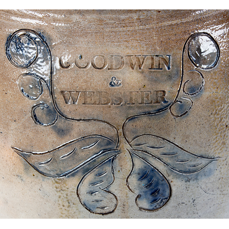 The firm of Horace Goodwin and Mack C. Webster was formed about 1810 when they acquired a pottery shop originally built by John Souter and later owned by Peter Cross on the corner of Potter and Front Streets in Hartford, Connecticut. However, by the early 1830s, the duo operated two potteries on Front Street and built a reputation for successful stoneware manufacturing. They supplied not only local demand but also established warehouses in Boston, Salem and Massachusetts. The partnership ended around 1840 when Horace Goodwin left the firm. Mack C. Webster continued the business with his son, Charles T. Webster, under the name M. C. Webster & Son until his death in 1857.