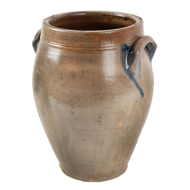 This is a particularly nice example of a circa 1830 stoneware crock made at Goodwin & Webster pottery. It is embellished with an incised floral decoration highlighted with cobalt, which is comparable to types produced in Manhattan and the Hudson River Valley region, etc. about the same period.