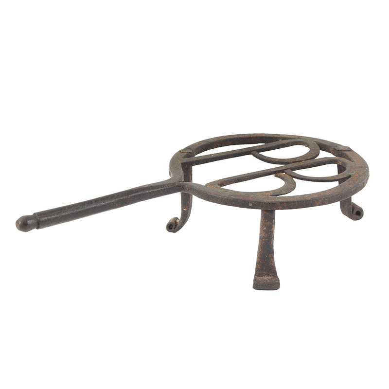 Early Hand Forged Iron Trivet – Initialed “PB”