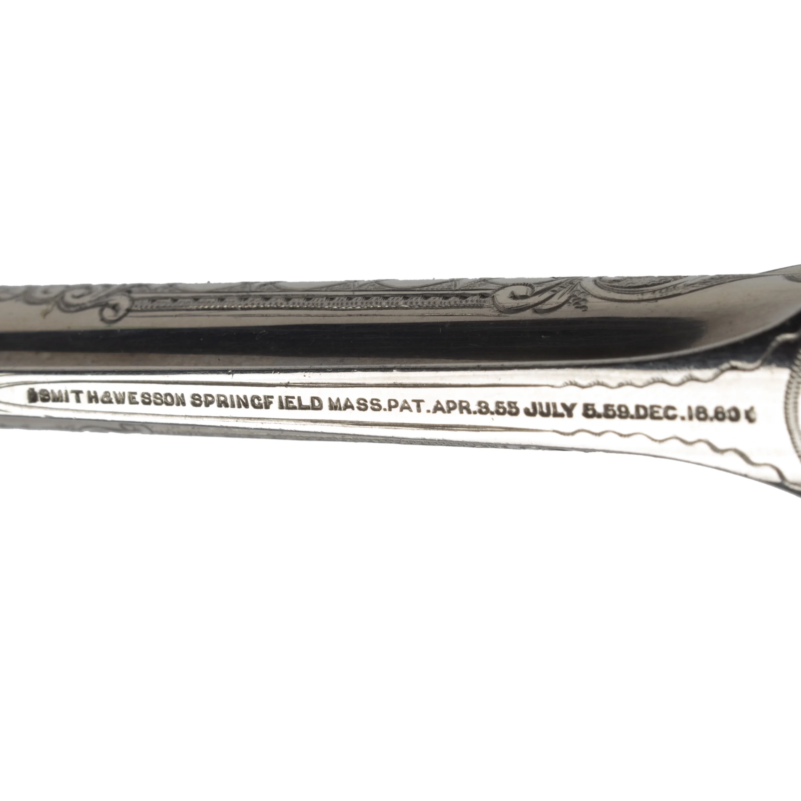 An outstanding example featuring near full coverage New York style broad floral scroll on a punch dot background. Round barrel, fluted cylinder, and bird’s head grip. Cased in a very rare leather-covered pipe case, worn interior but perfectly fitted.