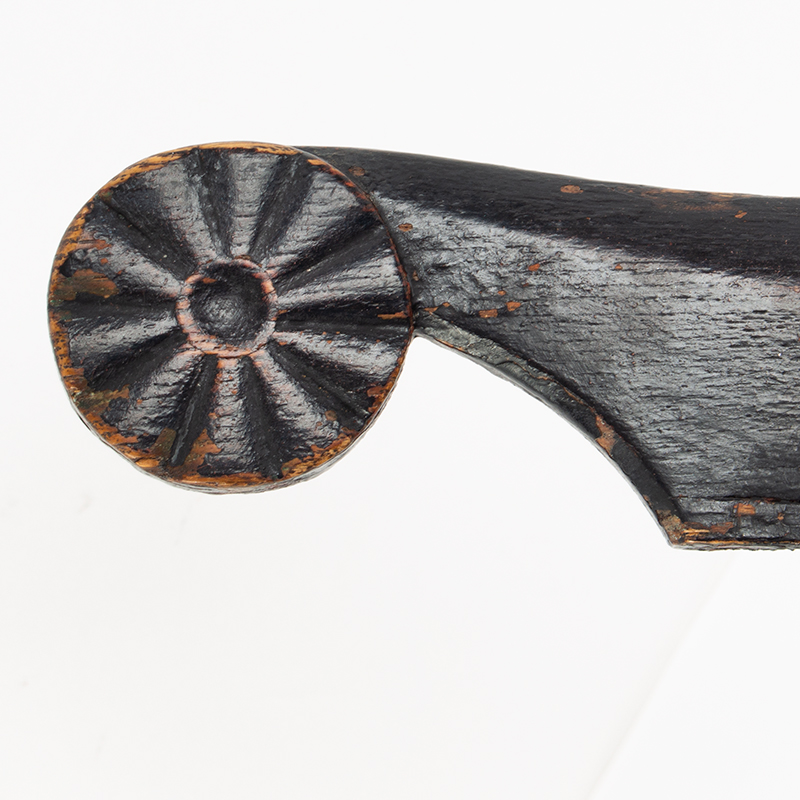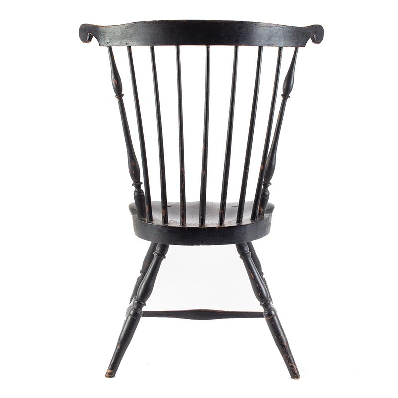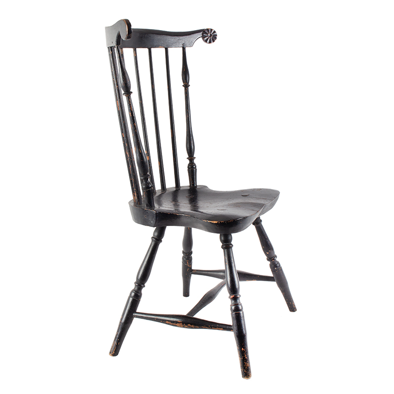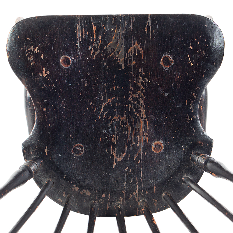 Material: Nineteenth-century black paint over original salmon red. Crest rail, back posts, and stretchers are of chestnut; spindles are hickory; the seat is pine.