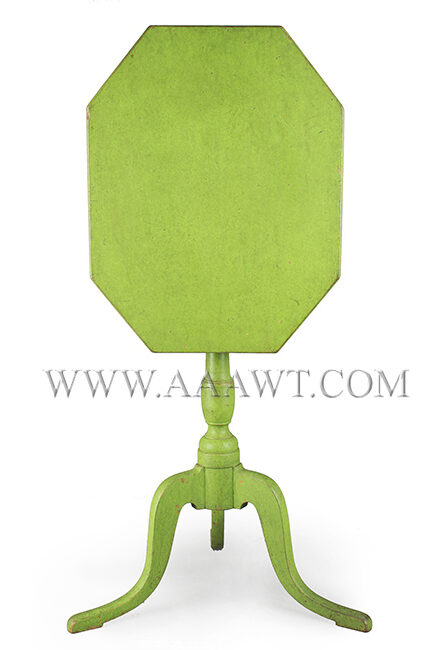 Coffin-shape tip-top, urn-turned standard, slab-cut cabriole legs on pad-feet The green paint is over original red.
