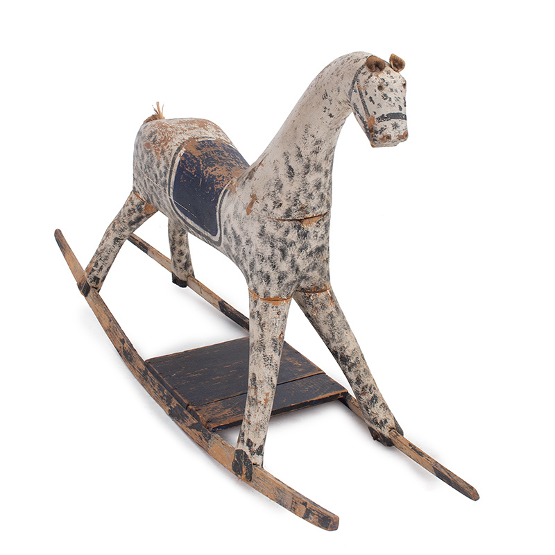 Folk Art Rocking Horse, Carved Wood in Original Paint - Antique Associated At West Townsend