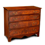 Item Condition: Good, flat chips or flakes [wood loss] to bottom drawer at upper and lower right proper facing as depicted. The brass hardware appears to be mostly original; some posts are obviously new. A couple bails are close matches and are period but slightly different. All posts are within original borings.