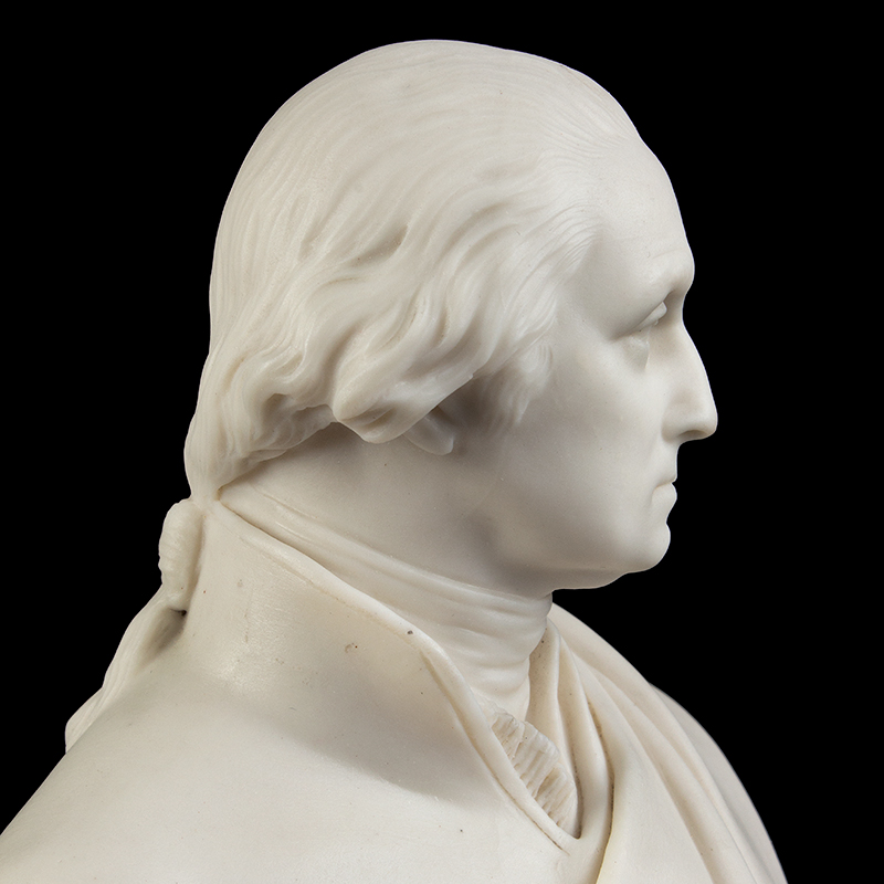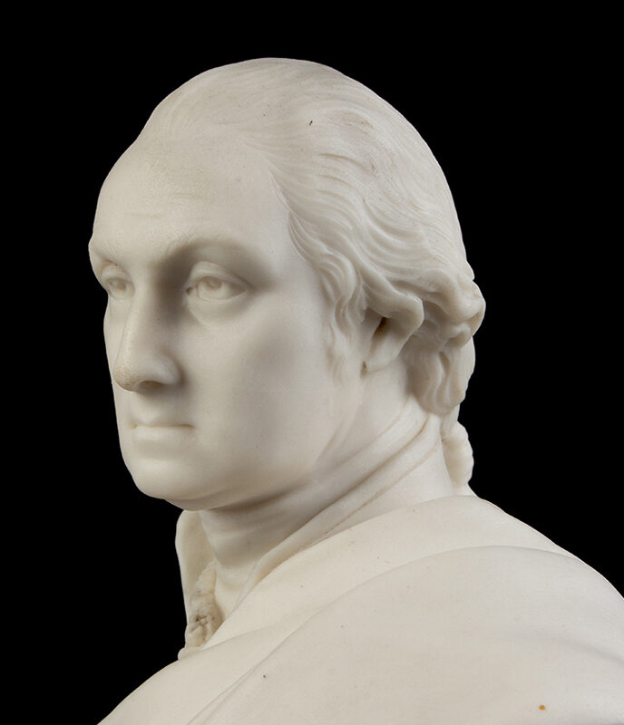 This statuette was modeled after Sir Francis Chantrey’s seven-foot Carrara marble statue of George Washington, which was installed in 1827 at the Massachusetts State House in Boston. Likely executed around the time of the 1876 Philadelphia Centennial Exposition, this noble, miniaturized figure of America’s first president reflected the patriotic sentiment in the country around the time of the first centennial.