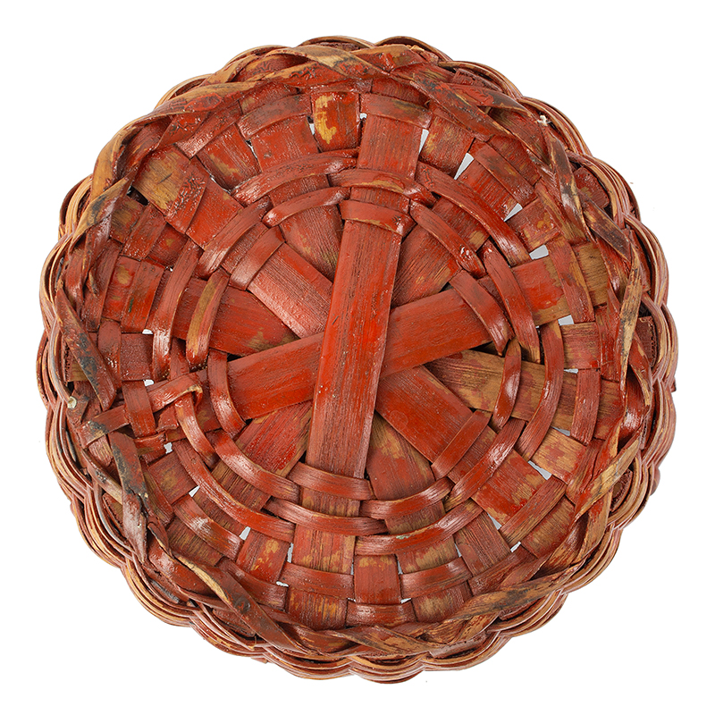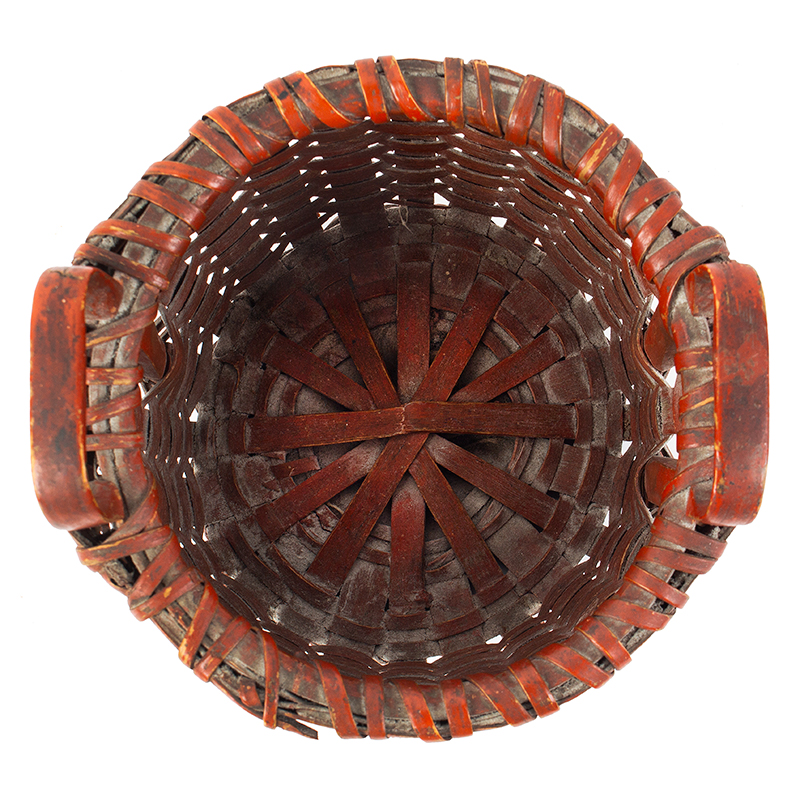 Miniature Splint Gathering Basket in Red Paint, Carved Notched Handles
