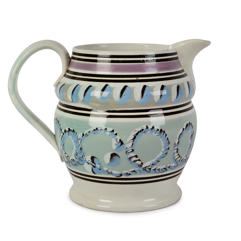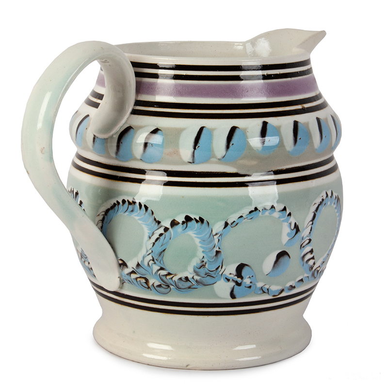 Mochaware Slip Decorated Pitcher, Unusual Form