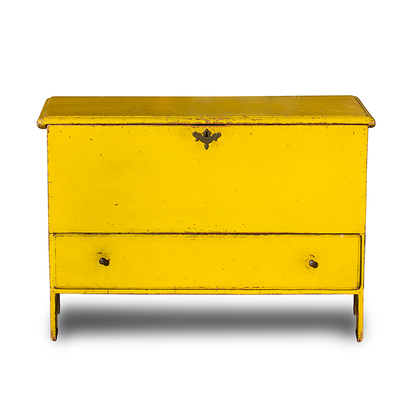 New England Painted Board Chest, Blanket Chest with Drawer, Vibrant Yellow - Antique Associated At West Townsend