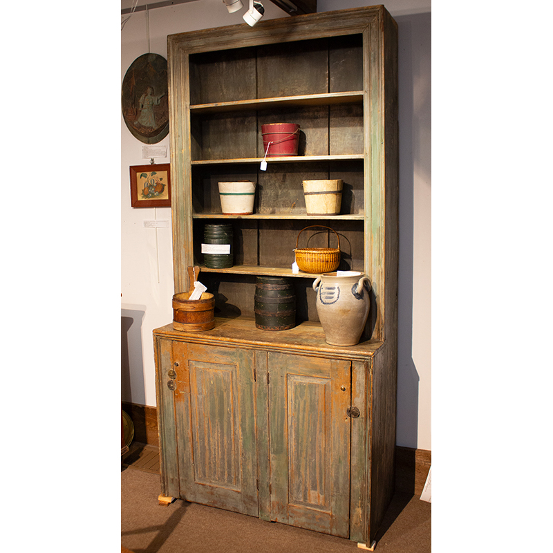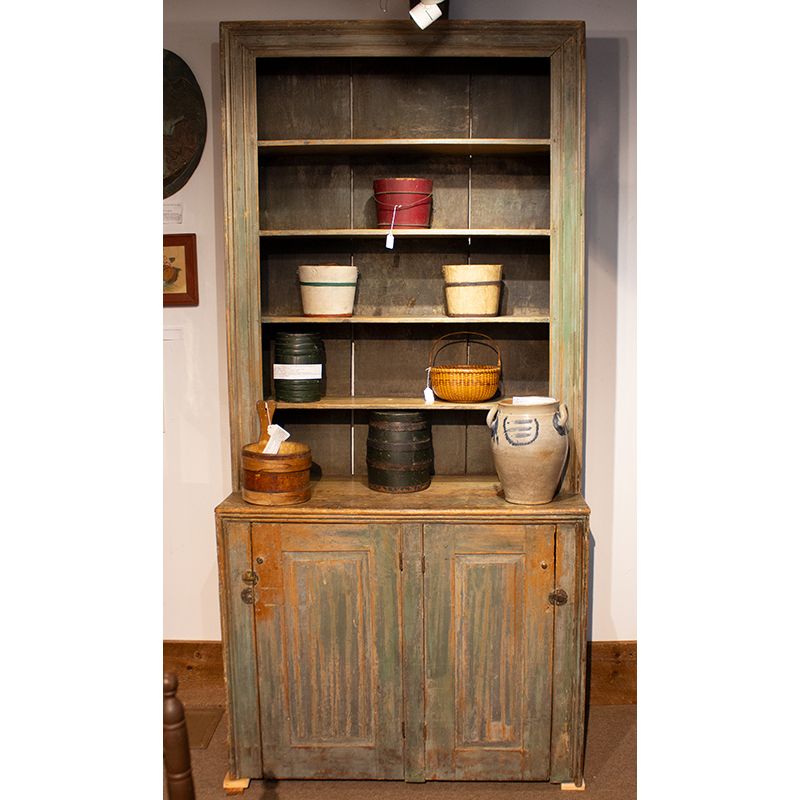 The open top section features beautiful picture frame molding as does the bottom case. A pair of raised panel doors are hung from the center stile.