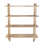Four shelves joining rear stiles. The bottom shelf rests on a shaped bracket; front shelves supported by baluster-turned posts featuring acorn finials. Dry-flat patina.