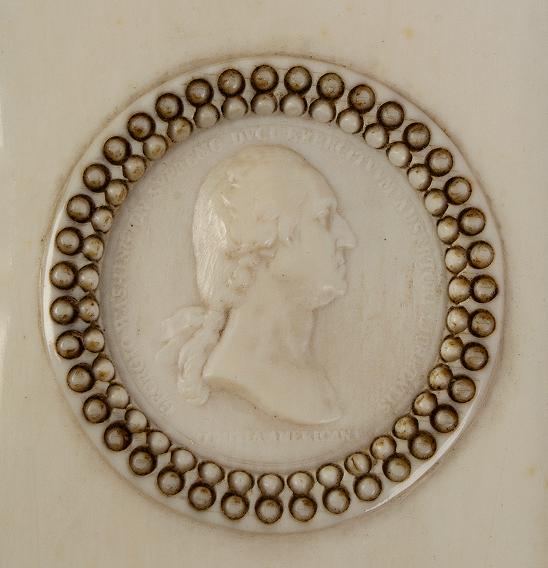 Features a carved ivory cover with a profile of George Washington, surrounded by a beaded border. Likely a commemorative or personal item from the late 19th century.