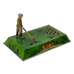 Ferdinand Strauss Co. Has 2 original golf balls, colors remain bright, mechanism functions well, contains an original scorecard and box. Box has some wear and tear but is intact.