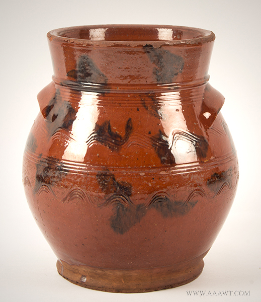 Redware, Bulbous Ovoid Storage Jar, Tooled Wavy Decoration, Flared Rim