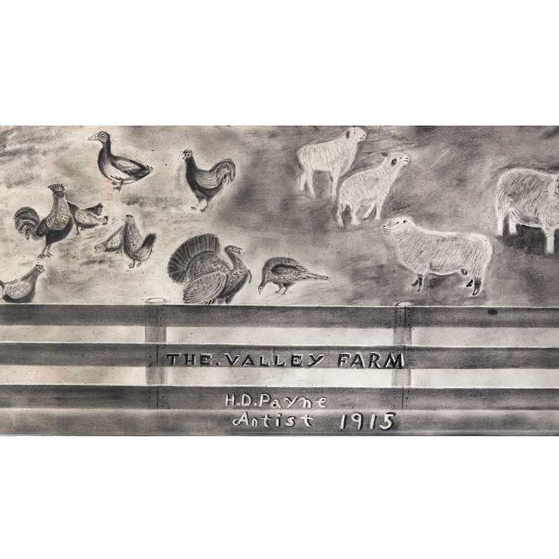Signature/Inscription: Signed and dated lower center on fence rail: “THE VALLEY FARM / H.D. PAYNE / Artist 1915” (chalk)