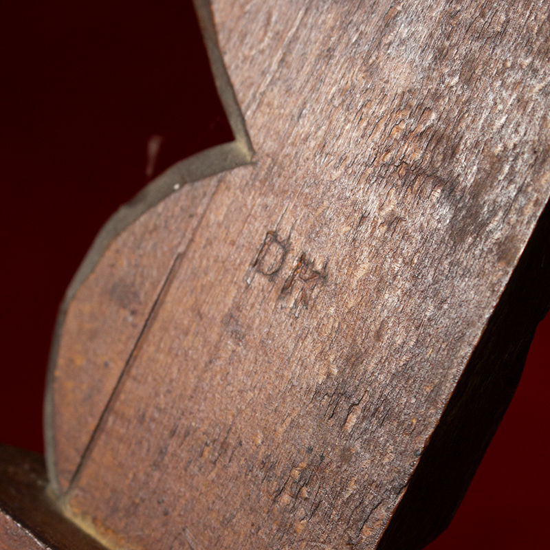 A great many of these chairs were imported from England to Boston and are frequently described as England or Boston. It has been said that unassembled chairs were joined/finished once they arrived in Boston. This chair is stamped three times with the following initials: “IB”, “DK”, and one being indecipherable.