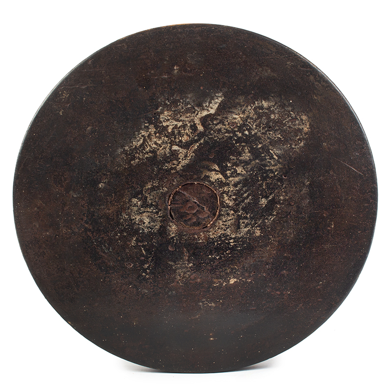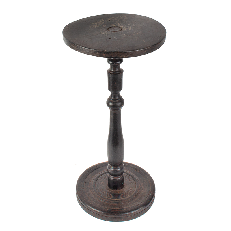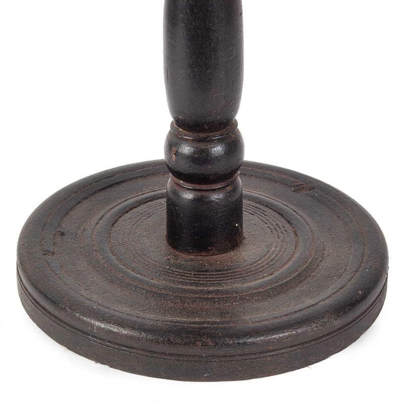The out-of-round top is pierced by the turned standard as is the base featuring turned concentric rings. The wonderful surface is likely original.
